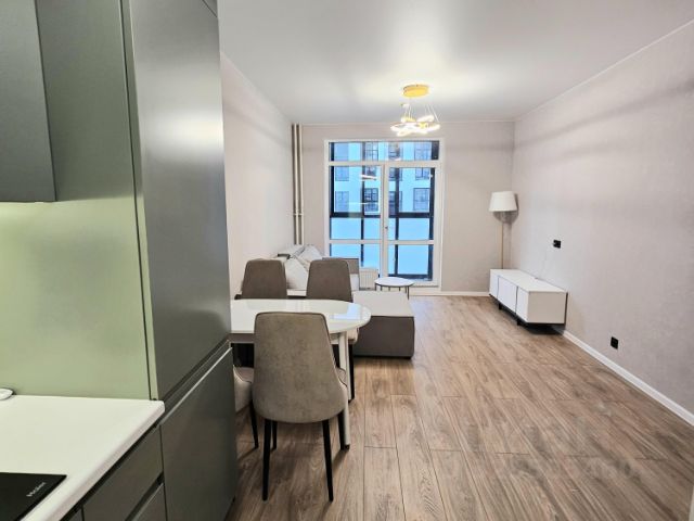 Прекрасная уютная квартира с новым ремонтом и новой мебелью и бытовой техникой. По планировке- просторная кухня с гостиной и отдельная спальня, совмещенный санузел и прихожая, а также балкон. Кухня укомплектована всей необходимой бытовой техникой- посудомоечная машина, духовка, варочная панель, вытяжка, кондиционер, холодильник, при заселении приобретут телевизор и стиральную машину. В гостиной- диван угловой, столик и тумба под тв. В спальне - кровать, шкафы, комод и тумбочки.