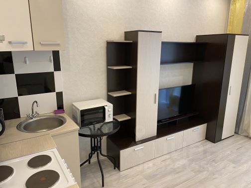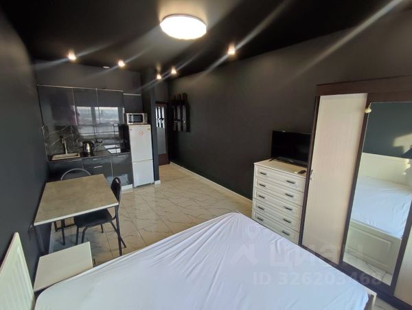 Сдается просторная студия с качественным ремонтом. По мебели и бытовой технике все необходимое имеется. Установлен кондиционер. Застекленная лоджия. Дом с огороженной территорией. До ЖД станции 10 минут пешком. Рассматривают одного человека.