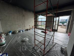 В помещении выполнены работы: стяжка пола, сантехника (смонтированы три мокрые точки, без насоса самотеком), санузел разделён на две каб...