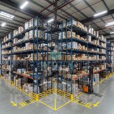Складские помещения оборудованы высотными стеллажами и необходимой погр...